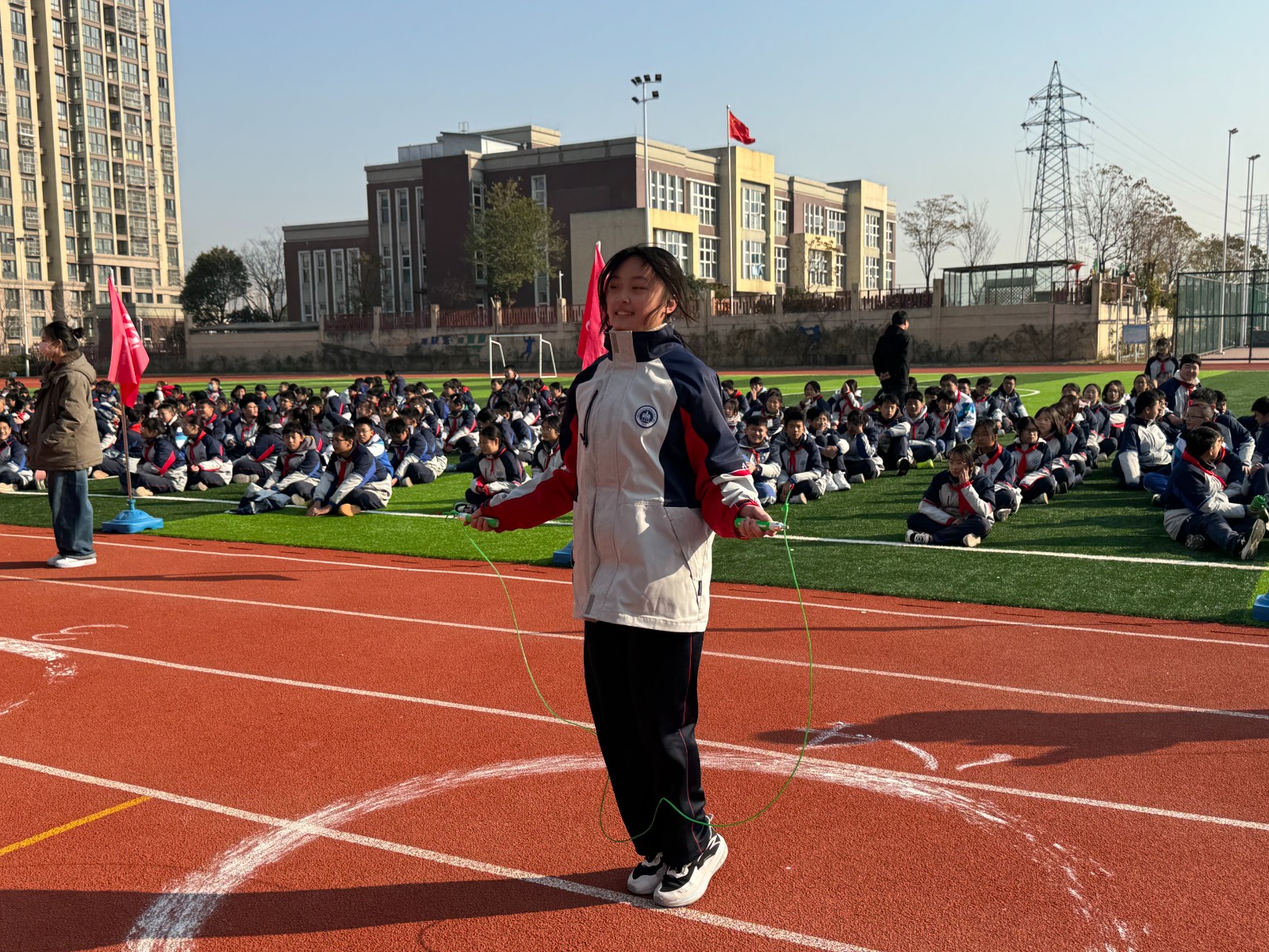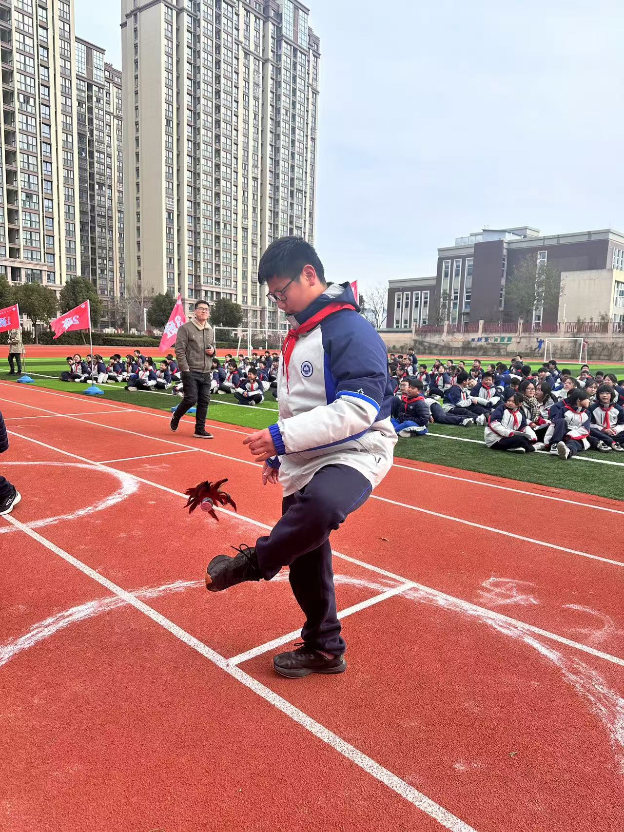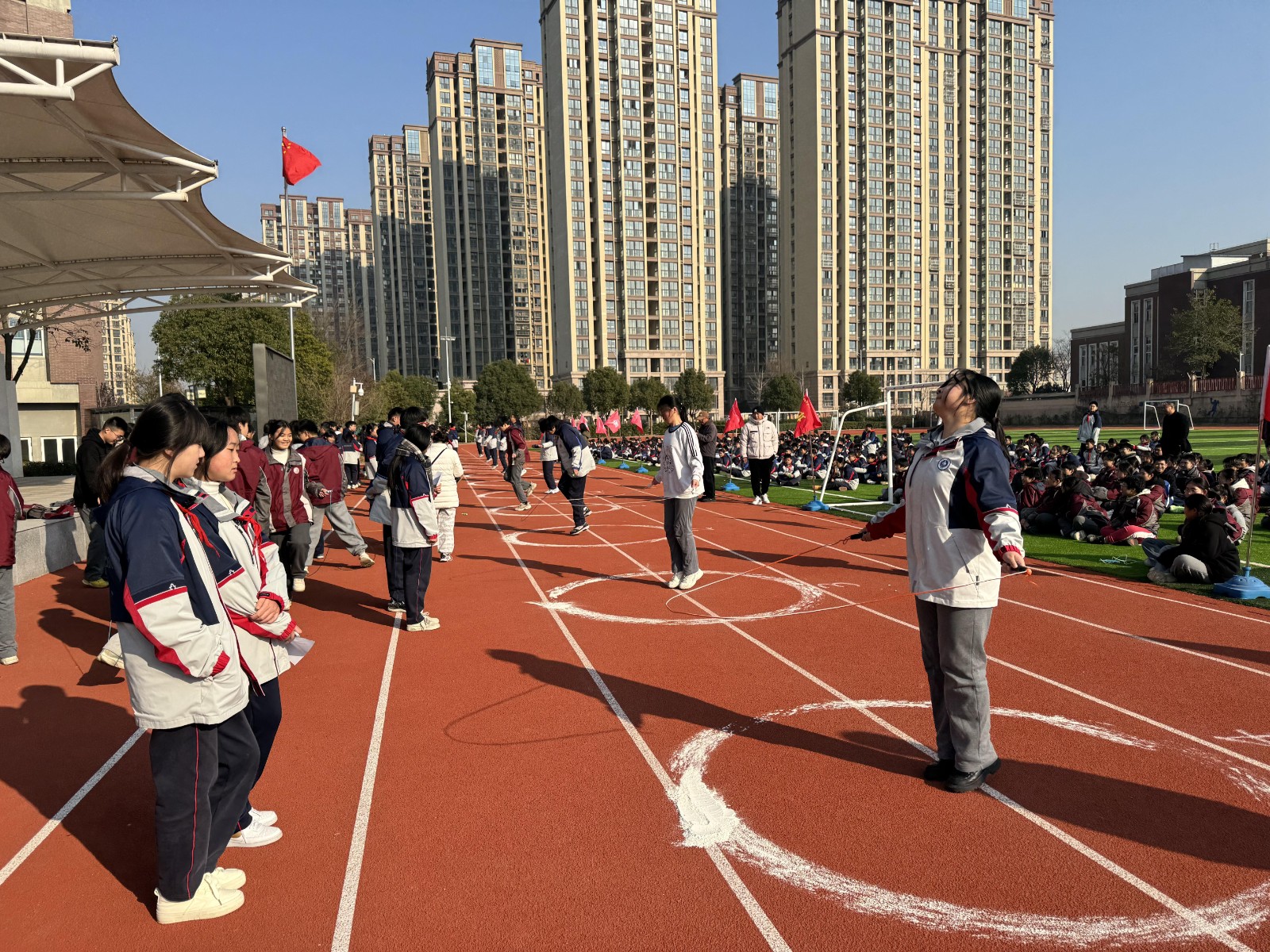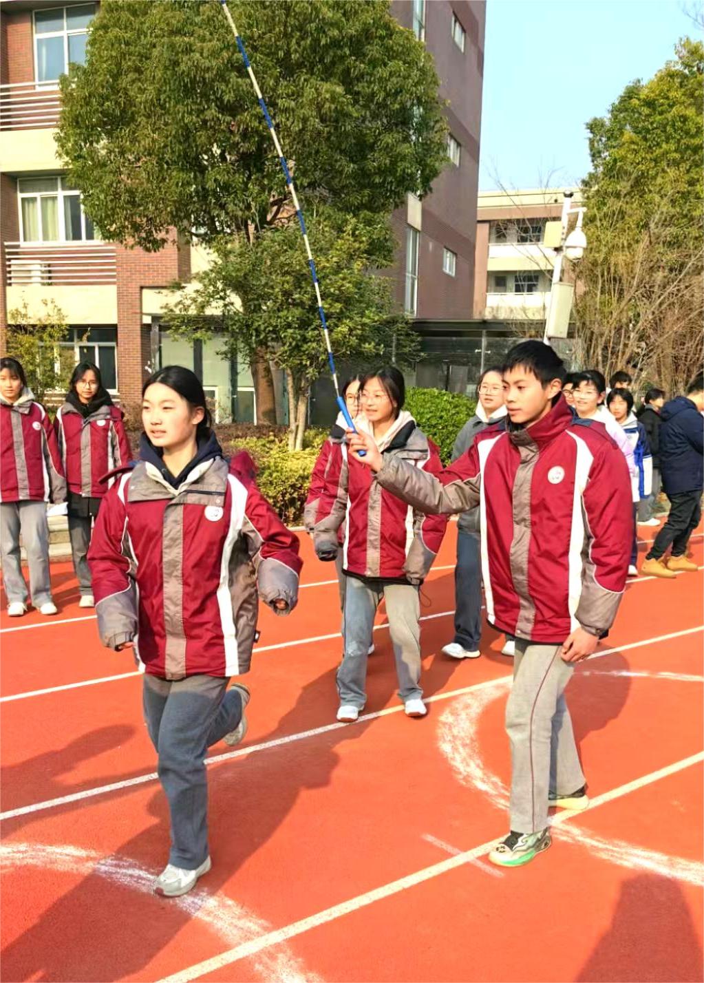 为丰富学生冬季大课间活动形式,增强学生的体质,提升学生的团队协作能力,2024年12月,金中仙林(龙潭校区)举行了冬锻三项系列大课间活动。本次比赛项目包括踢毽子接力、跳短绳接力和跳长绳竞赛。