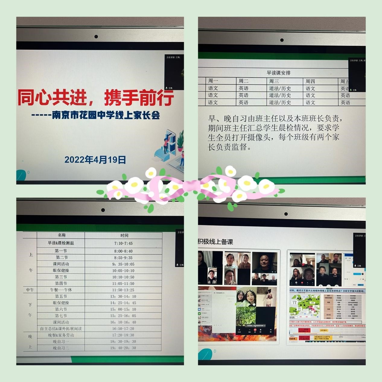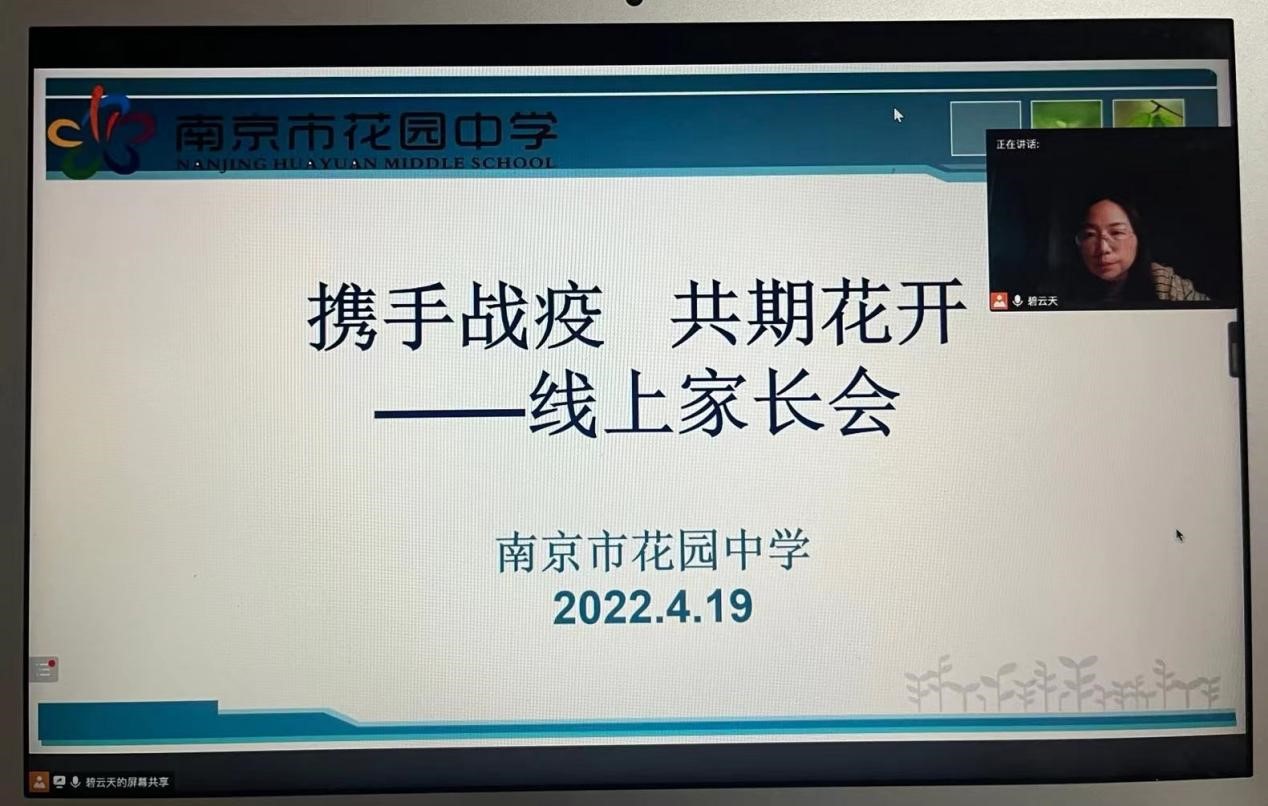 疫情反复,牵动人心。为进一步促进学校与家长之间的沟通,家校携手同心抗疫,共同呵护学生的生命安全和身心健康,提高线上教学的实效性,同时也给家长们分享居家陪伴的策略,缓解家长的焦虑情绪。4月19日晚,南京市花园中学召开了“携手战疫 共期花开”线上家长会。会议由张云霞副校长主持,赵能军校长、王殊副校长及全体学生家长参与会议。