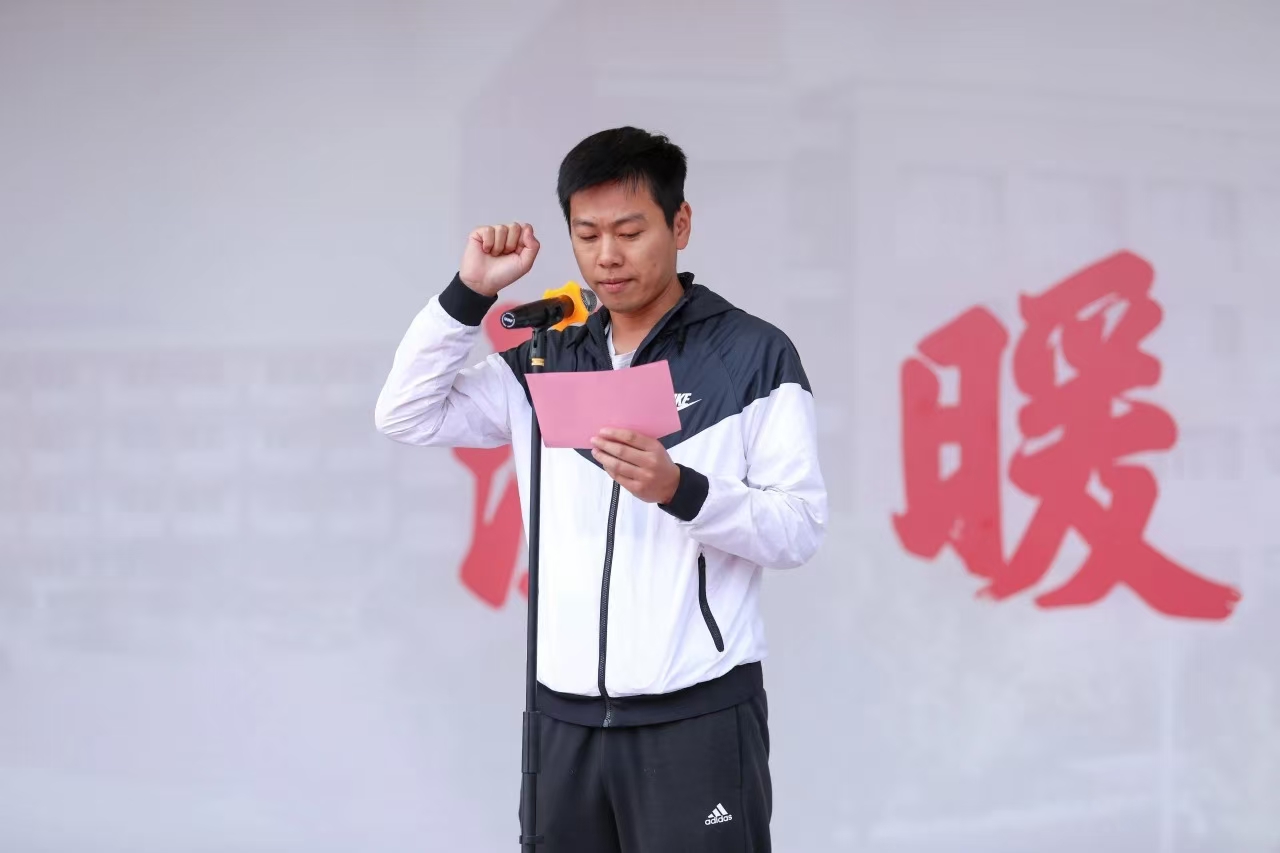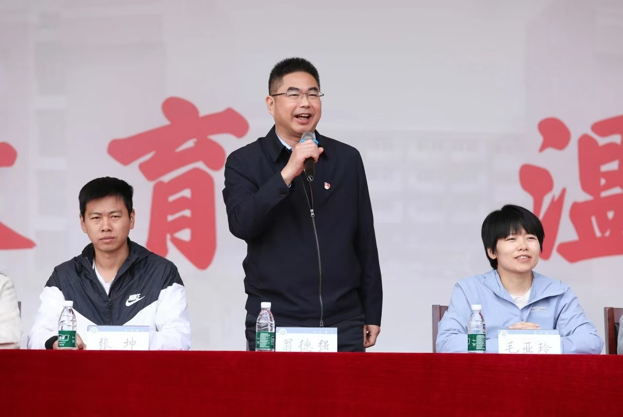 升旗仪式在庄严肃穆的国歌声中开始,五星红旗冉冉升起,全场师生肃立,共同见证了这一庄重时刻。党总支书记翁德强随后发表致辞,热烈祝贺运动会的召开,并向全体参与者表达了诚挚的问候。他强调了体育运动对于学生全面发展的重要性,并鼓励大家积极参与,培养健康的生活方式。